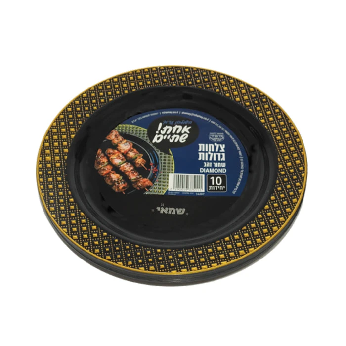 שמאי | 10 יח' צלחות גדול דיימונד שחור זהב